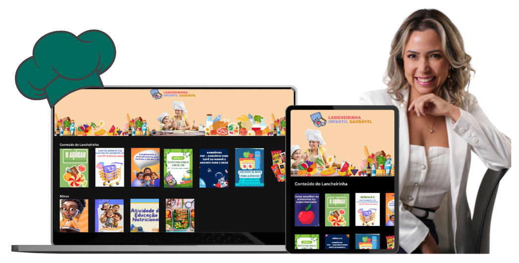 Tenha em suas mãos um ecossistema completo para transformar a Lancheira do seu filho, COM MAIS DE 300 RECEITAS SAUDÁVEIS E RÁPIDAS (10 minutos) que Elevam a Imunidade e Melhoram a Concentração dos Pequenos na Escola em até 3x.