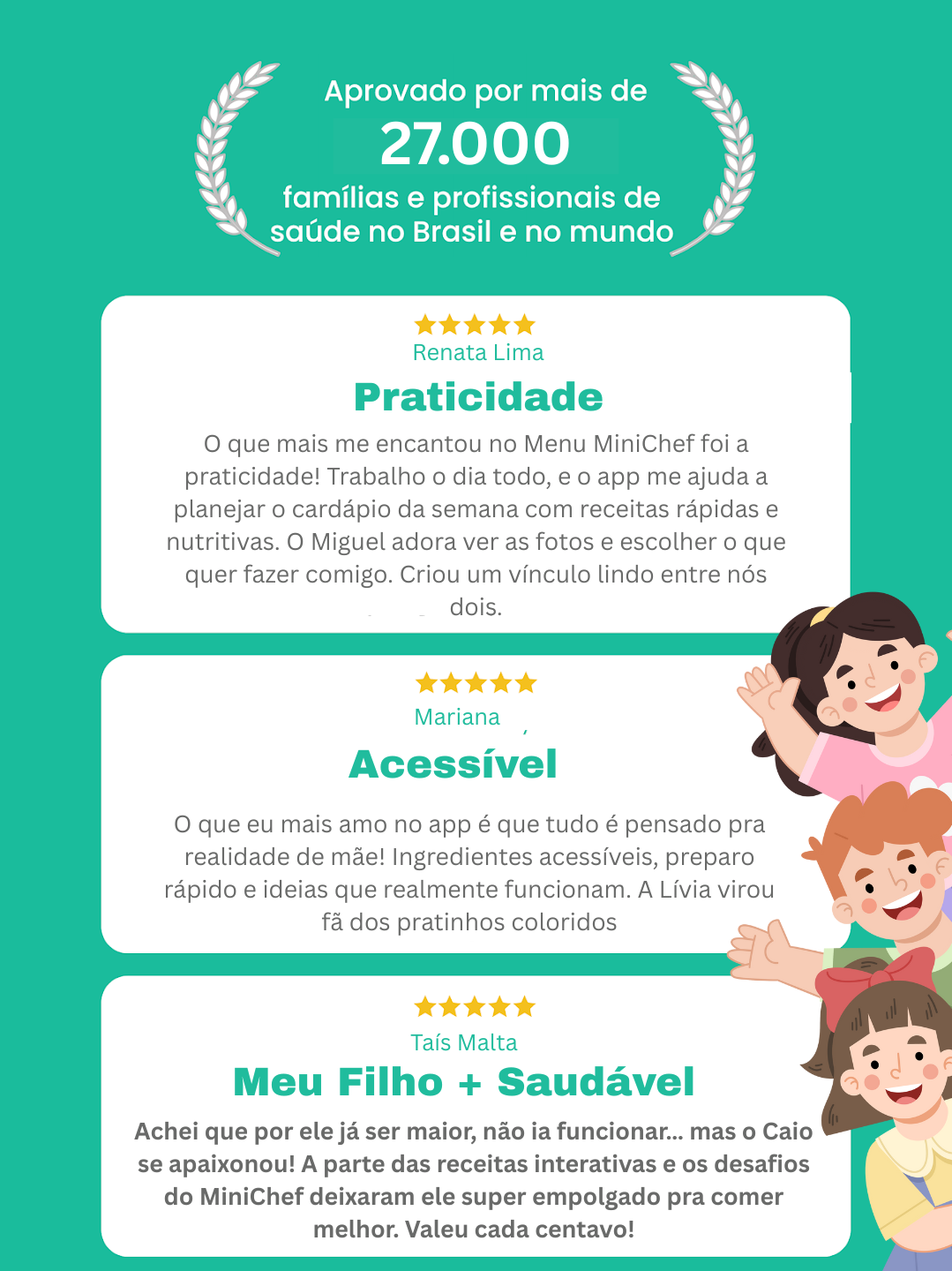 Tenha em suas mãos um ecossistema completo para transformar a Lancheira do seu filho, COM MAIS DE 300 RECEITAS SAUDÁVEIS E RÁPIDAS (10 minutos) que Elevam a Imunidade e Melhoram a Concentração dos Pequenos na Escola em até 3x.